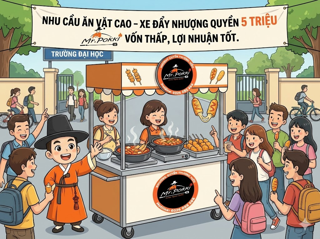 Chi phí nhượng quyền Mr.Pokki 2026: Mô hình 5 triệu, 25 triệu, 60 triệu dễ đầu tư